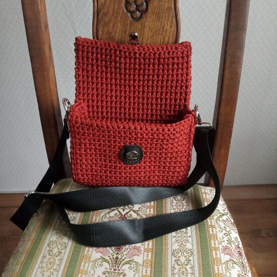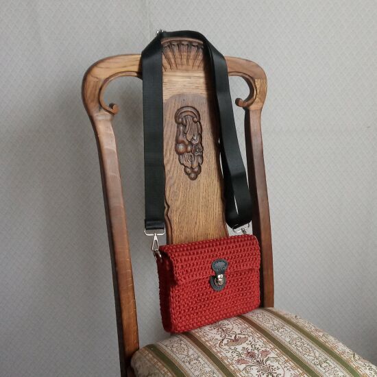 Сумочка кросс-боди сногсшибательного рябинового цвета.