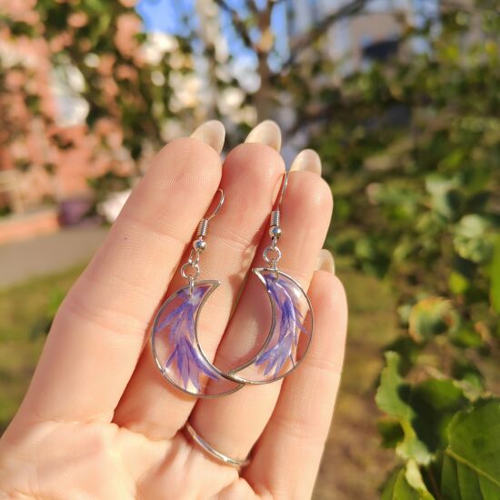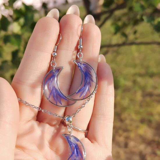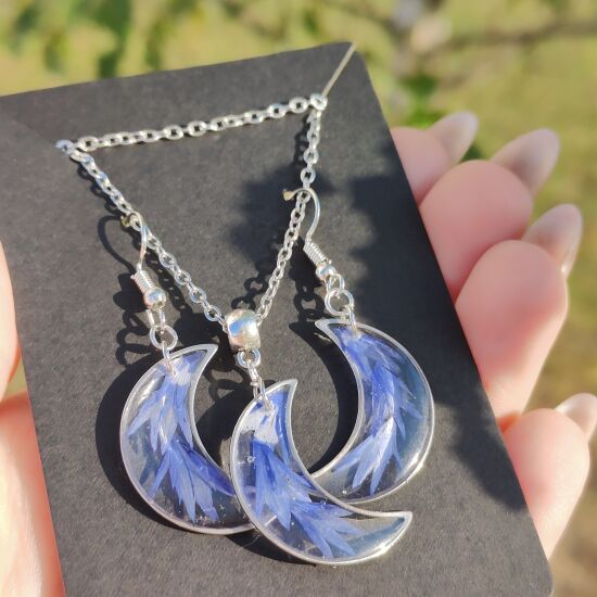 Серёжки и кулон на цепочке с настоящими васильками внутри