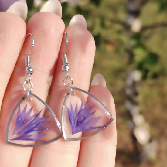 Комплект: серёжки и кулон с цепочкой с настоящими васильками внутри