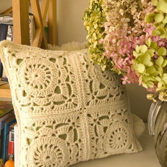 Декоративная наволочка. Размер 37х37. Основной материал лен. Вязаный декор шерстяная нить. Для уюта в вашем доме.