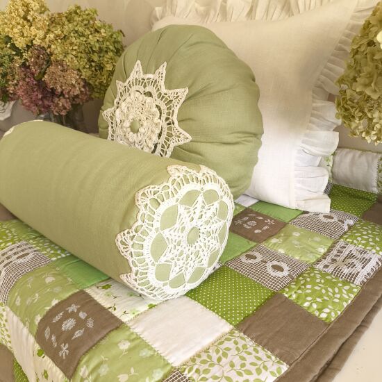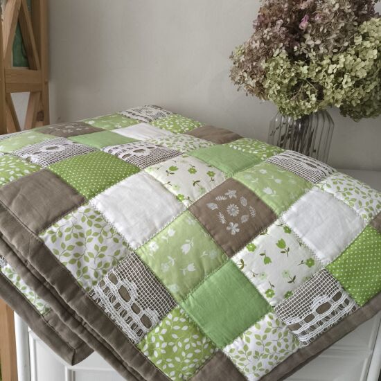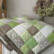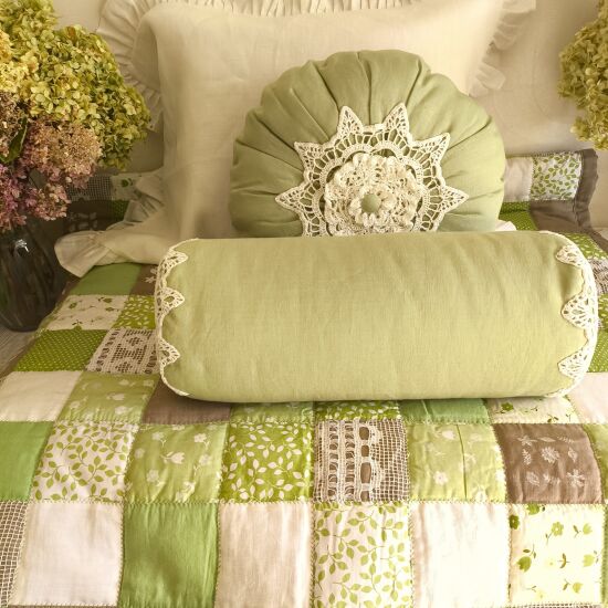 Покрывало лоскутное. Размер 132х202. Состав лен и хлопок. Наполнитель синтепон. В качестве декора использована штамповая печать, и элементы кружева. Очень красивое и неповторимое покрывало. Украсит любую комнату. К нему в комплект можно добавить декоративные подушки и валик, что сделает вашу кровать ещё краше.