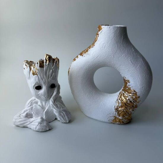 Набор ваза для сухоцветов и грут сделано из гипса подойдёт для интерьера вашего дома