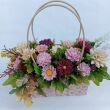 Ароматный букет из мыльных георгин и хризантем в сумочке. Размер 34*20см.