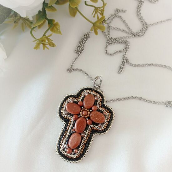 Вышитый кулон на съемной подвеске (Корея).Размер 6см.Мвтериал: японский бисер, китайская Делика,синтетический авантюрин(,, золотой песок,,). Изнанка натуральная кожа, японская булавка