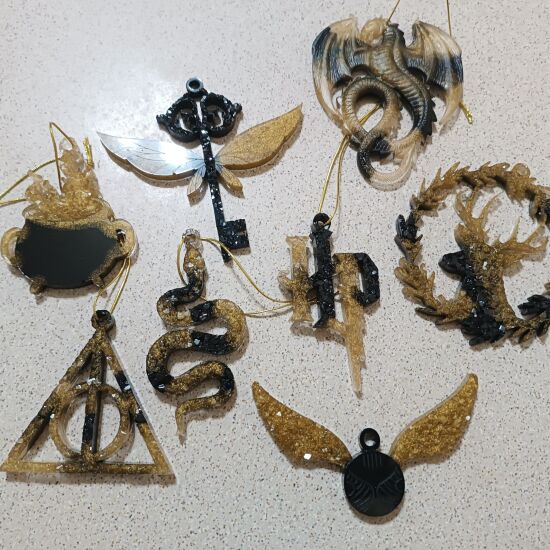 Ёлочные игрушки из серии Гарри Поттер из эпоксидной смолы ручной работы. Набор игрушек в подарочной упаковке с открыткой станет отличным подарком для любителей и поклонников Гарри Поттера. Именно такого не будет ни у кого. Можно приобрести по отдельности. Набором дешевле.
