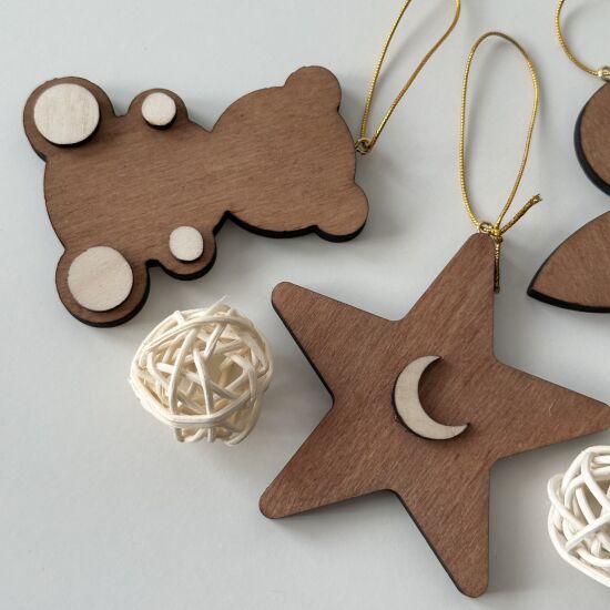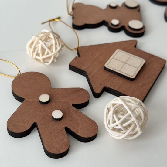 Новогодние игрушки из дерева «Звездочка», «Ангелочек», «Мишка» «Домик», «Пряничный человечек».