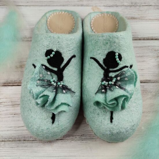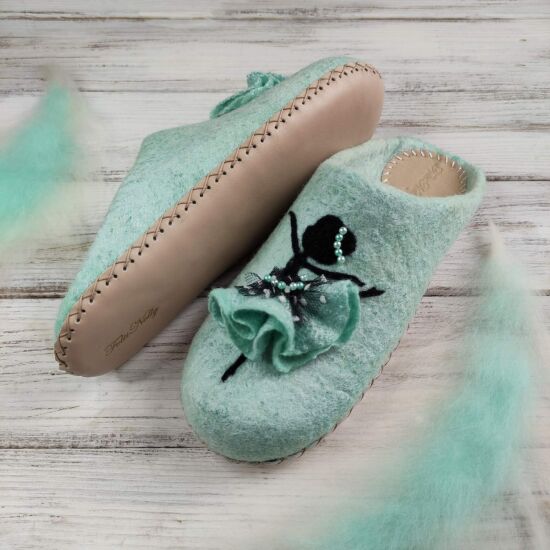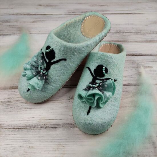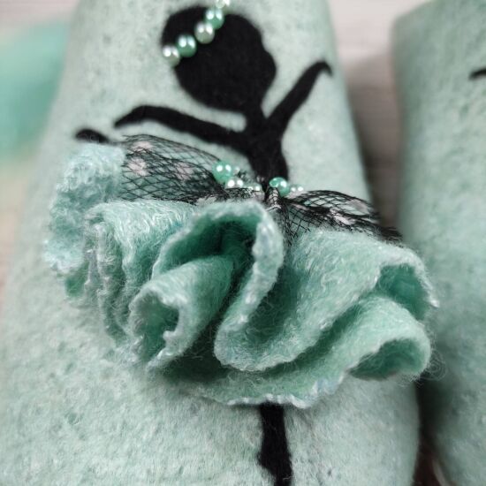 Тапочки нежного мятного цвета, но хорошо будут смотреться и в нежно-розовом.