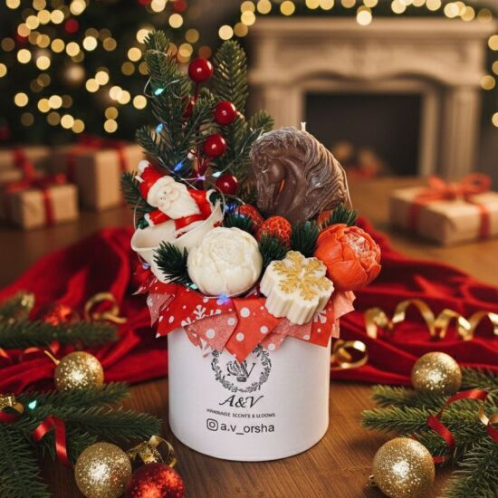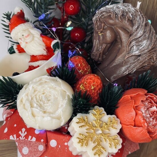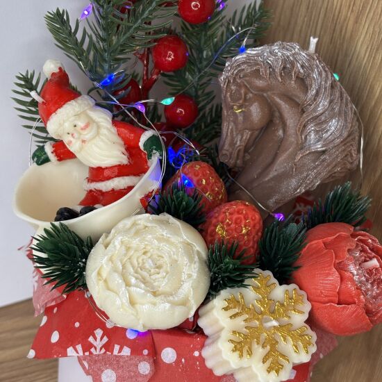 Ручная Работа: Каждая деталь – от фигурки Деда Мороза до изящных цветов и символа года – выполнена вручную из высококачественного воска.