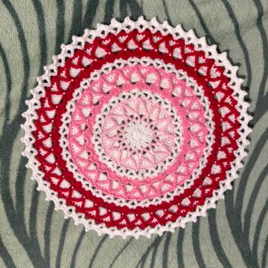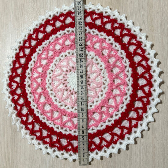 Салфетка ручной работы, вязанная крючком. Материал-100% акрил. Диаметр 30 см. Прекрасно подходит для сервировки стола, на столик в прихожую, для украшения интерьера. Простота в уходе за изделием.
