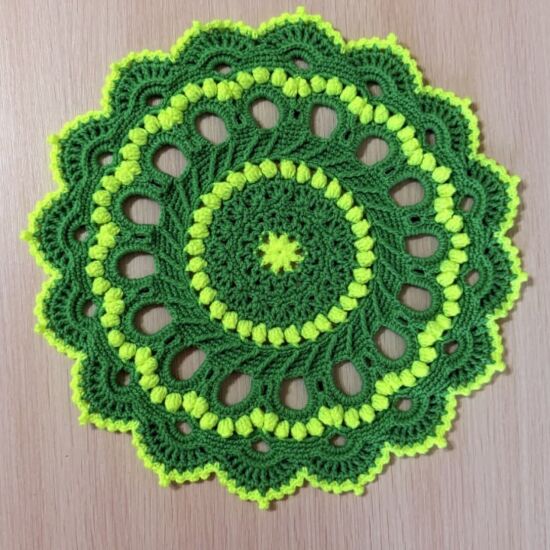 Салфетка ручной работы, вязанная крючком. Отлично держит форму, подходит для сервировки стола, званых обедов, для декорирования помещений. Не теряет форму при стирке, не прихотлива в уходе. Диаметр 33 см