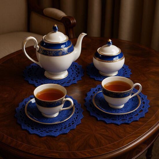 И такие детали, как эта вязаная синяя салфетка, создают ту самую атмосферу... мягкую, уютную, живую.