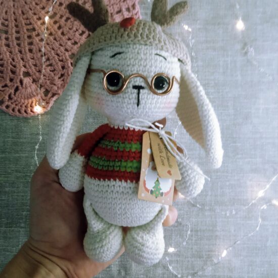 Новогодняя игрушка зайчик в очках