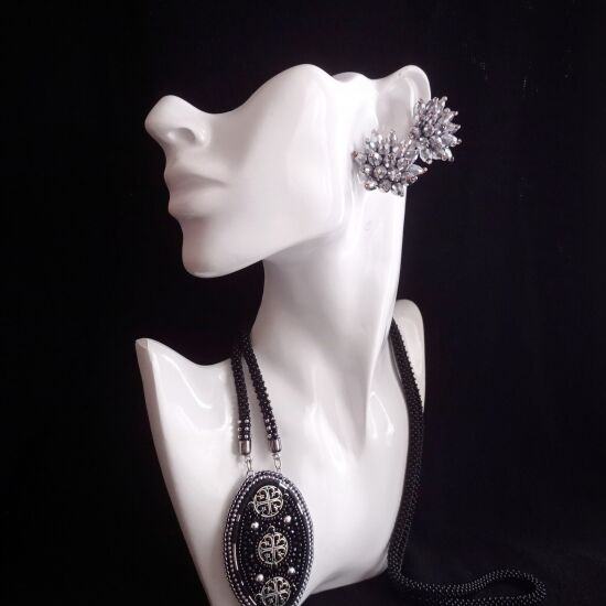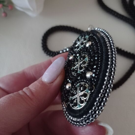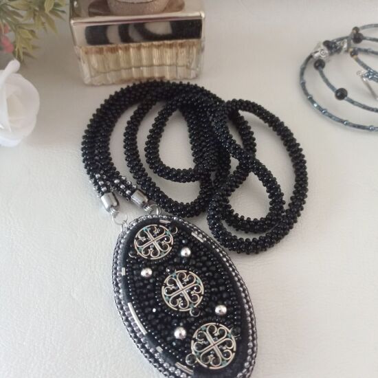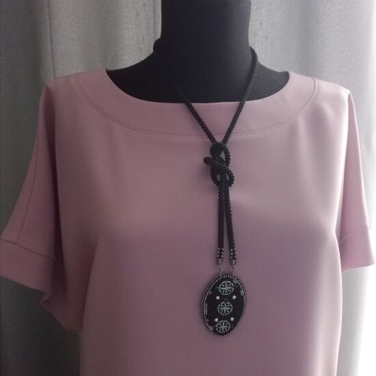 Длинное изящное украшение с крупным кулоном (вышивка бисером и бусинами,стилизованный клевер на удачу 😊) Жгут 90см,кулон 7см