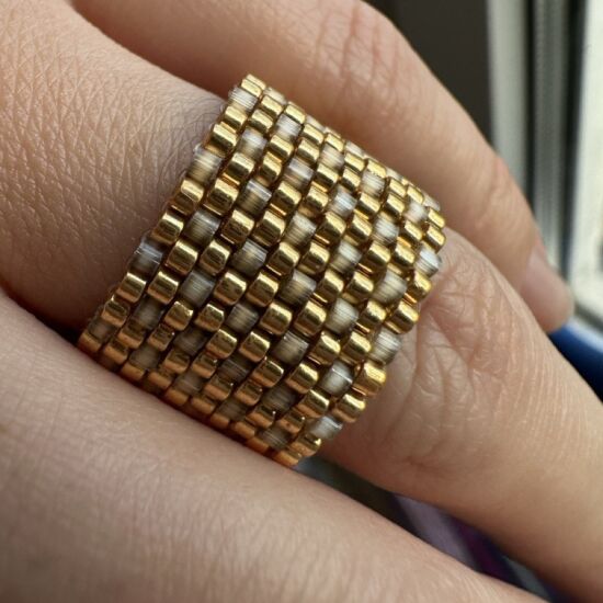 Пусть это кольцо станет вашей главной деталью. Кольцо из ювелирного японского бисера, будет смотреться дорого и изысканно с любым нарядом. Оно не просто сверкает - оно переливается, словно отражение гирлянд в шампанском.