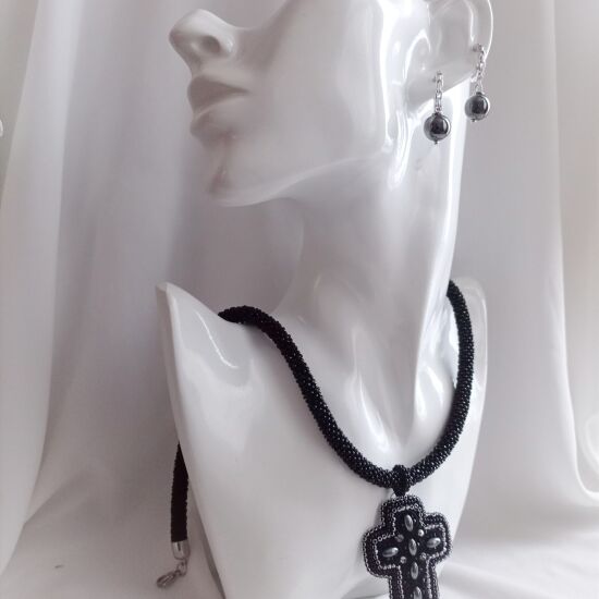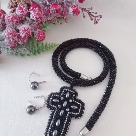 Жгут вязаный (бисер чешский и шпинель,блестит супер 😊)длина 45см.Серьги шарики(гематит) 8мм.Швензы Корея (гипоалергенные, не темнеет)Кулон вышитый(бисер, бусины гематит, японский бисер)Размер 6см на 4см