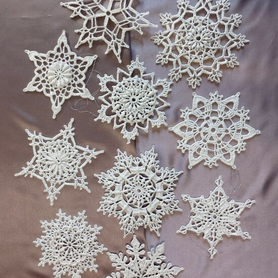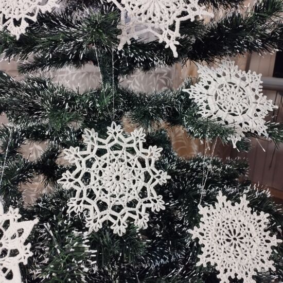 Набор снежинок для украшения Новогодней елки 10 шт. Диаметр 12-14 см. Ручная работа, материал хлопок.