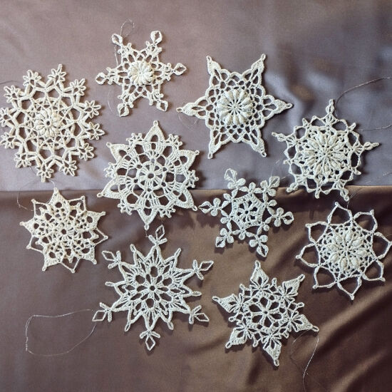 Набор снежинок для украшения Новогодней елки 10 шт. Диаметр 10-12 см. Ручная работа, материал хлопок.