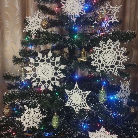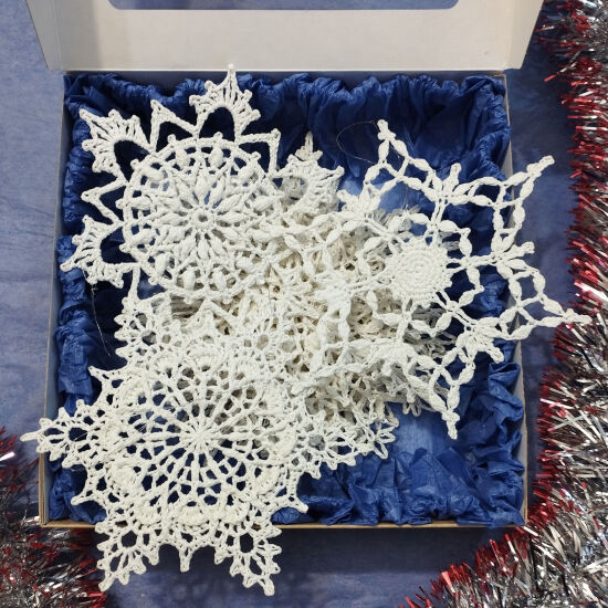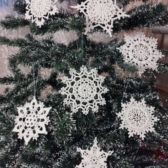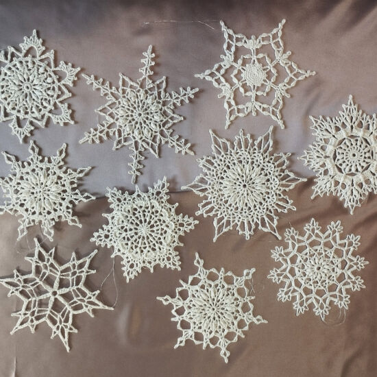 Набор снежинок для украшения Новогодней елки 10 шт. Диаметр 14-16 см. Ручная работа, материал хлопок.