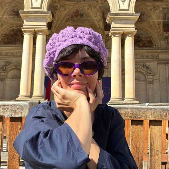 Берет ажурный. Для тех, кто хочет подчеркнуть свою индивидуальность. Цвет тёмная сирень. Связан крючком. Пряжа Пинск, 50%шерсти. Размер 57-58.