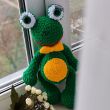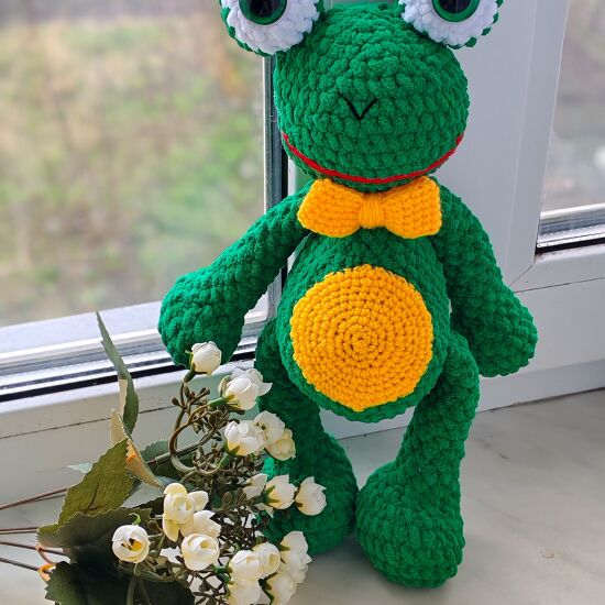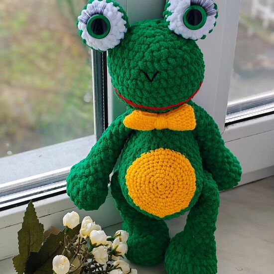 Жабка выполнена из плюшевой пряжи. Глазки на безопасном креплении.