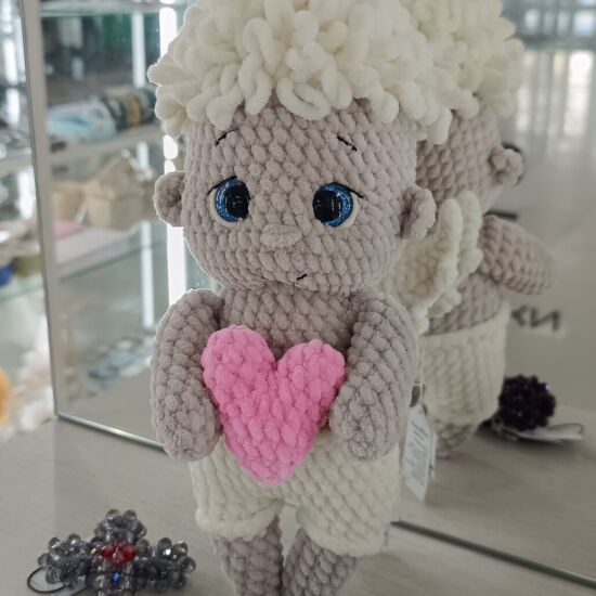 Милый Ангелочек из гипоаллергенной плюшевой пряжи станет прекрасным другом для вашего ребенка. Также такую игрушку можно подарить любимому человеку, как символ вашей любви