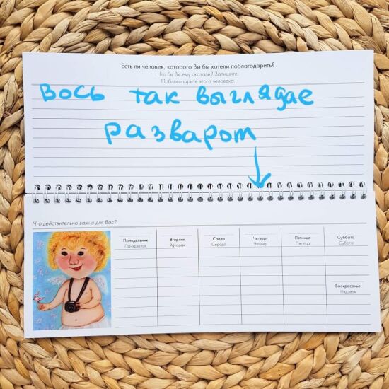 Планинг (еженедельник) недатированный, рассчитан на год. "Добрый еженедельник" может стать инструментом для изучения своего поведения в конфликтах, и в целом приблизить к пониманию того, как успешно разрешать конфликтные ситуации.