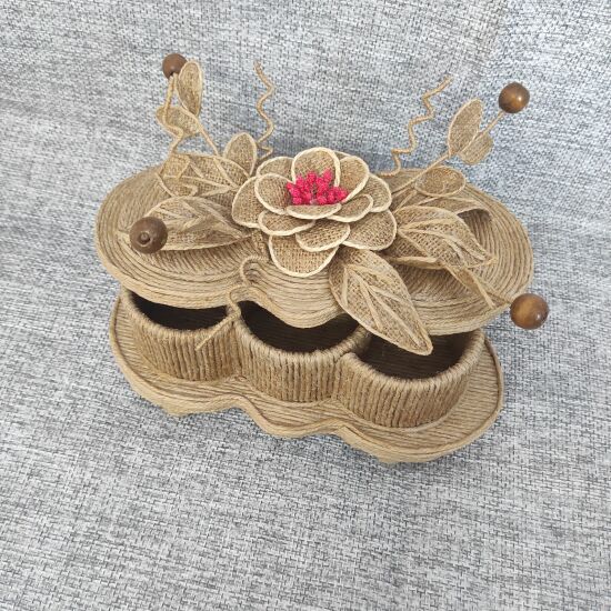 Прекрасная шкатулка ручной работы на три отделения из джута. Интересный дизайн. Для хранения украшений. Прекрасный подарок вашим близким.
