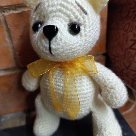 Медвежонок из акриловой пряжи, глаза на безопасном креплении, высота 14 см. Милая игрушка для подарка, в наличии, Титан.