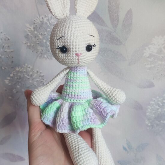 Милый зайчик ростом 26,5 см. связан из полухлопковой пряжи. Глазки на безопасном креплении. Отличный подарок для себя и близких.