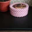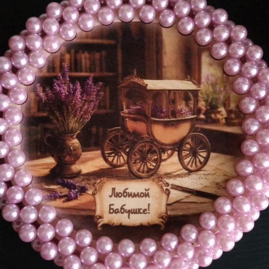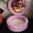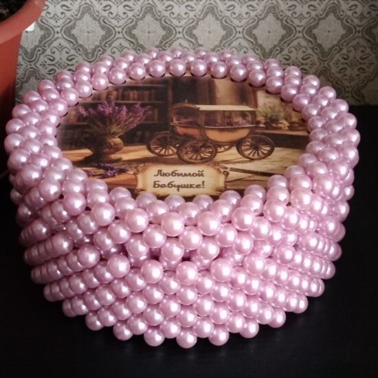 Подарочная шкатулка из бусин для любимой бабушки. Размер донышка 15см. Можно использовать для конфет, ниточек и других мелочей.