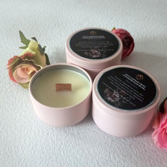 Плотная, бархатистая свеча. При контакте с кожей тает, превращаясь в богатое, питательное масло с кремовой, обволакивающей текстурой. Легко распределяется и после массажа хорошо впитывается, оставляя кожу шелковистой, без ощущения липкости или тяжелой жирной пленки.